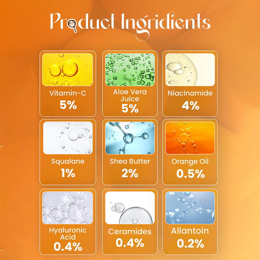 · 5% Vitamin C – Brightens complexion, fights dullness, and reduces pigmentation.