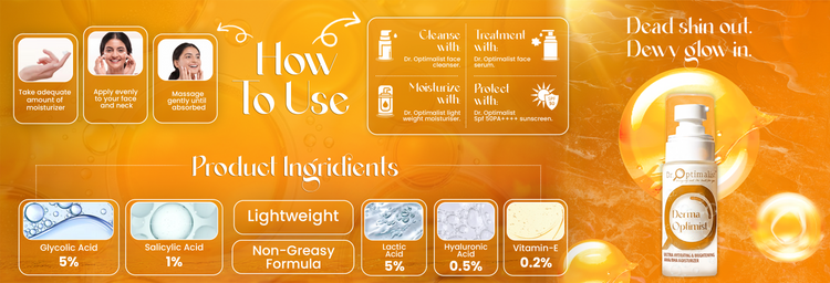 The exfoliating action of Glycolic Acid and Lactic Acid helps gently remove dead skin cells, revealing fresh, glowing skin. This process improves skin texture, smoothens rough patches, and reduces dullness for a radiant complexion. Meanwhile, Salicylic Acid penetrates pores to prevent breakouts and keep skin clear, making this moisturizer ideal for acne-prone skin as well.